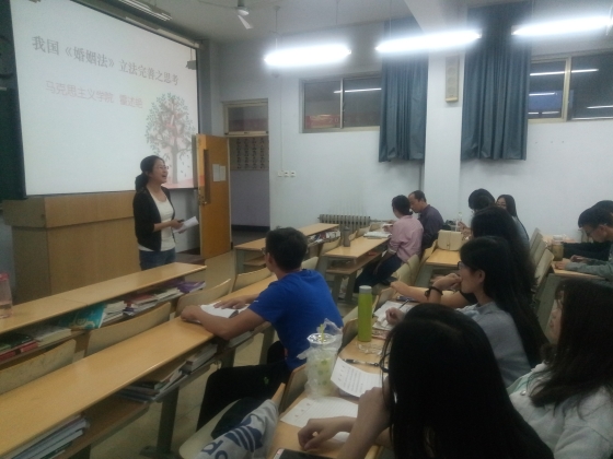 5月23日,公司教师霍述艳在2号教学楼215教室作了题为《我国<婚姻法>立法完善之思考》的学术报告。