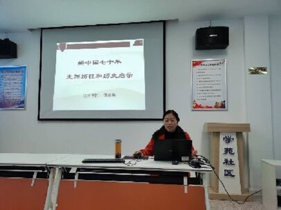 傅开梅教授以《新中国七十年 光辉历程和历史启示》为题目,从我国七十年的辉煌历史、伟大成就和历史启示三方面娓娓道来,给社区党员带来了一场生动的党史、国史教育课。党课结束后,3044am永利集团3044noc党员与社区领导座谈交流,总结交流前期“双报到”工作成果,继续深入了解社区的需求、问题,了解群众所需所盼,提高下一步活动的针对性、实效性。