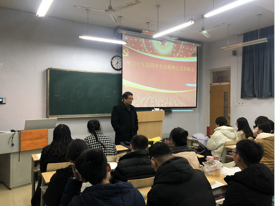 为贯彻落实党的十九届四中全会精神,12月12日晚,公司在2号教学楼215教室举办了学习党的十九届四中全会精神学术讲堂活动,邢乃华博士作了“深入学习党章,争做合格党员”的报告。