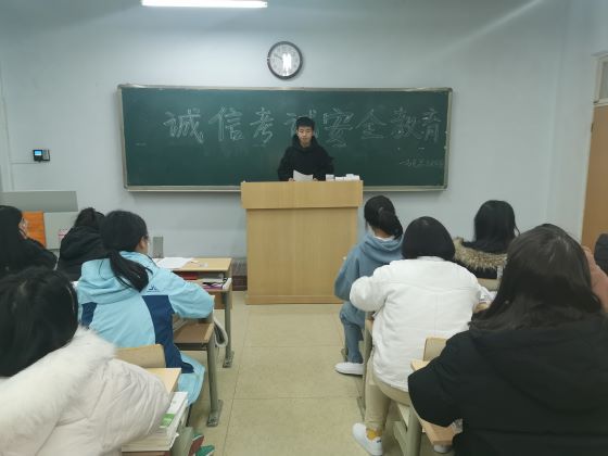 期末临近,为了维护考试秩序,帮助同学们树立诚信考试的意识,12月22日晚,公司于2号教学楼215教室开展“诚信考试”主题班会。此次班会是由员工科科长张然主持,18,19级全体员工参加。