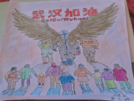 活动前期,负责人通过QQ、微信等方式下发活动通知和规则给各位同学,做好前期准备工作,同学们陆续在到梦空间报名。报名的同学需自行设计并赋予绘画一定的内涵,符合抗疫的主题要求,通过电子邮件发送给活动负责人。李玉婷以白衣天使为主题,彰显了一线医务人员的伟大,致敬疫情期间最美逆行者。曹枫汝的作品表达了对无私奉献的医护人员的崇敬,鼓励大家众志成城,共抗疫情。最终,19级王雨晴获得一等奖,18级王双双等4名同学分获二等奖和三等奖。