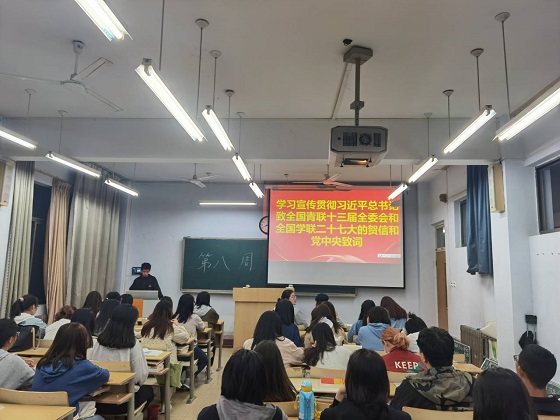 会议开始,王培向员工宣传贯彻习近平总书记致全国青联十三届全委会和全国学联二十七大的贺信和党中央致词,在同学们对致词有了了解后,王培便鼓励同学们要大力弘扬中华民族勤俭节约的优良传统,大力宣传节约光荣、浪费可耻的思想观念。此外,王培强调了考研的重要性,为大家讲解了备考的几种方法,在此基础上引出了读书的重要性,并提到日后会定期举办读书交流会,检验大家的读书成果,赢得了同学们的一致好评!会议最后,王培对会议做出总结,引起了同学们的热烈反响。