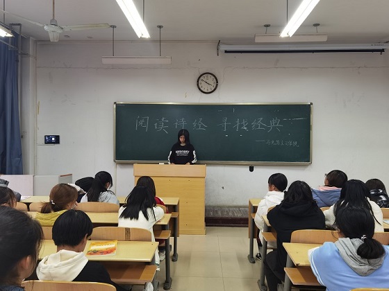 为保障活动的顺利进行,学院在活动前期进行了充分的宣传,鼓励同学们以宿舍为单位认真研读诗经,整理收集自己喜欢的内容于活动现场分享交流。活动伊始,同学们以朗读的形式向参加活动的同学分享了自己的研读成果。随后,大家结合自己活动前期的理论学习和现场同学的分享展开讨论交流。讨论环节中,胡从礼结合《诗经·小雅·何人欺》中的经典内容,分享了自己关于新时代老员工应如何向古人学习,做“不愧于人,不畏于天”的时代新人的相关观点。张玉环结合《诗经·小雅·鹤鸣》的相关内容,分析了如何在学习生活中巧妙学习诗经中的方法论体系,借助“它山之石”实现自身的进步与发展。活动在同学们的朗读和分享讨论中圆满结束。