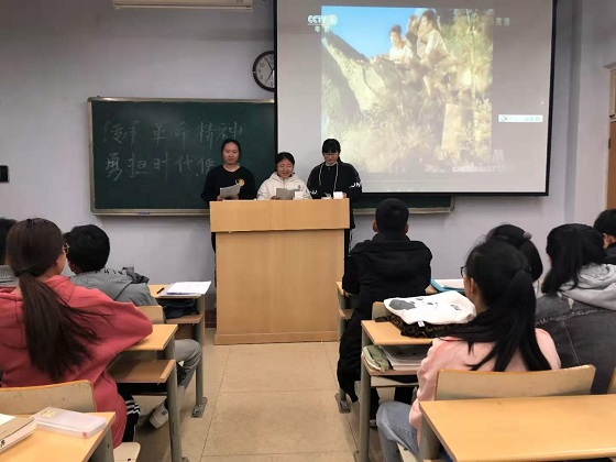 活动伊始,主持人刘玲玉结合革命先烈的英雄事迹向同学们介绍了弘扬和传承革命精神对新时代中国特色社会主义建设的重大意义。随后,同学们以小组为单位展示了自己的革命影视配音表演,赢得了同学们的热烈掌声。各组表演完成后,同学们结合各组的影视配音表演作品展开交流讨论,结合自己的生活、学习实际发表了自己的观看感悟。活动最后,同学们以匿名的方式进行投票评选,经学习部统计整理,最终评选出六组同学们最喜爱的配音作品,李瑞瑞同学获得“时代最强声”称号。