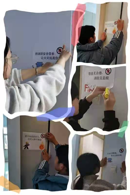 活动前,负责人积极宣传,向同学们转达了此次活动对于排除宿舍消防安全隐患的重要性,鼓励同学们积极参加。活动开始后同学们积极响应,各宿舍对自己设计的标语进行介绍,并张贴到宿舍消防通道处。其中,胡从礼介绍自己宿舍设计的标语“健全制度把好关,消灭火种不抽烟”的设计理念,表达了对宿舍吸烟的坚决杜绝,赢得大家的一致好评。李瑞瑞在宿舍消防通道处张贴并介绍其宿舍设计的标语“宿舍无杂物,消防无后顾”,吸引过往的同学们驻足观看,并讨论宿舍存在的安全隐患,使同学们对消防标语上的知识做了系统的了解,起到了及时预防火灾事故发生的作用。同学们纷纷表示,此次活动有利于使“消防无小事,消防安全靠大家”的观念深入人心。