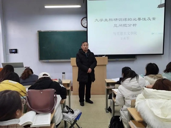 活动伊始,王老师结合同学们的学习实际对老员工科研训练的必要性及常见问题展开分析。随后,王老师对同学们进行科研训练提出了三点要求:一是巩固所学知识;二是锻炼理论批判思维;三是提升书面语言表达能力。王老师要求同学们对所学知识进行审慎的反思、审查,要弄清理论与现实是否相符,将理论与实际相结合。最后,王老师与现场同学围绕老员工科研训练的相关问题进行了交流与互动。此次讲座内容丰富,讲述生动,引人入胜,获得了现场员工的热烈反响。