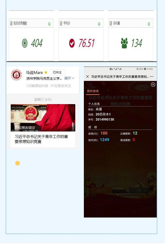 本次线上学习交流活动分为自主学习心得分享、线上分享交流会、知识竞赛三个环节。1月9日,3044am永利集团3044noc举办《习近平与大学朋友们》学习心得分享活动。活动前期,学院广泛宣传、积极动员,采用班级群等网络渠道向同学们介绍了《习近平与老员工朋友们》的主要内容,鼓励大家认真阅读,用心感受书中习近平同志对老员工们的谆谆教导并撰写学习心得。张琦同学在心得感悟中写到“《习近平与大学朋友们》这本书以采访实录的形式,讲述了习近平与老员工朋友们之间一个个生动的小故事,书中习近平总书记言辞恳切,句句包含对青年老员工的殷切期盼,也使我懂得以青春之小我融入祖国之大我的意义。”此次活动使员工潜心学习,并有所思考、有所感悟,有助于员工奋发图强,刻苦学习,努力成长为合格的社会主义建设事业接班人。