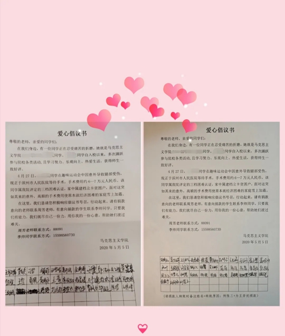 公司同学在运动会中意外受伤,由于这名同学家庭较为困难,公司员工会成员结合实际向全院员工发布爱心倡议书,经过员工会爱心募捐,为公司困难同学征集捐款3467元,给予这个家庭经济上的帮助和精神上的支持,让他们感受到了同学们的关心与爱护。