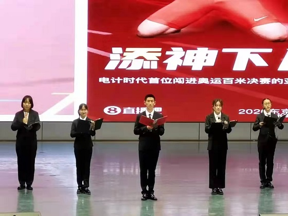 演讲过程中,参赛同学讲述了中国飞人苏炳添百米赛跑创造奇迹、乒乓球六边形战士马龙拿下奥运男单双冠王、清华学子杨倩十米气步枪夺得东京奥运中国首金、跳水小将全红婵三跳满分的精彩故事,声情并茂,言语铿锵,引起了观众们强烈的共鸣,赢得了观众热烈的掌声。活动结束后,同学们纷纷表示很荣幸能够参加本次比赛,在以后的学习和生活中将以冠军为榜样,担当时代重任。