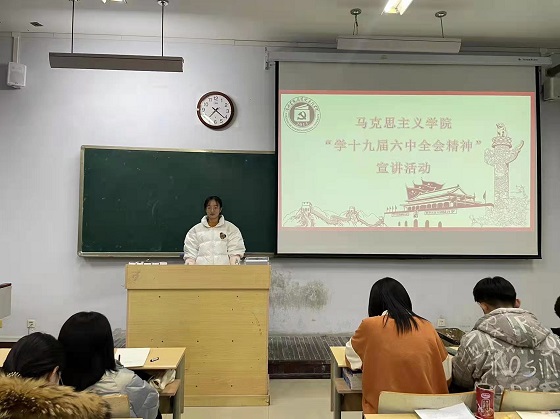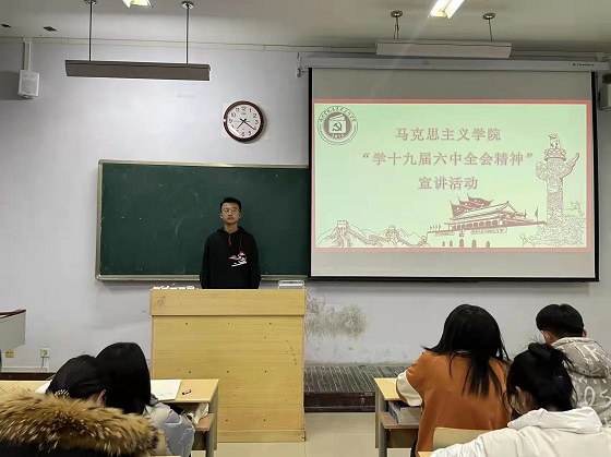 活动前期,负责人做好充分策划和宣传工作,积极动员同学们参与活动。活动伊始,活动负责人首先为同学们简单介绍了十九届六中全会精神的有关内容和意义,并展示了有关文件内容,使同学们对十九届六中全会精神有初步的理解。