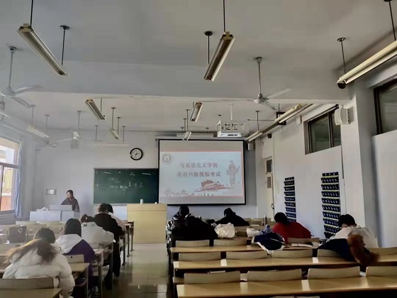 随后,同学们自行合理分配答题时间,完成阅读理解和翻译等题。考试过程中,同学们自觉遵守考试纪律,从容作答,全身心地投入到这次模拟考试中。距离考试结束还有15分钟时,监考人员提醒同学们注意把握考试时间,仔细检查,避免出现漏题空题现象。考试结束后,同学们立刻停止答题,监考人员收好答卷后,同学们带好个人考试用品有序地离开了考场。