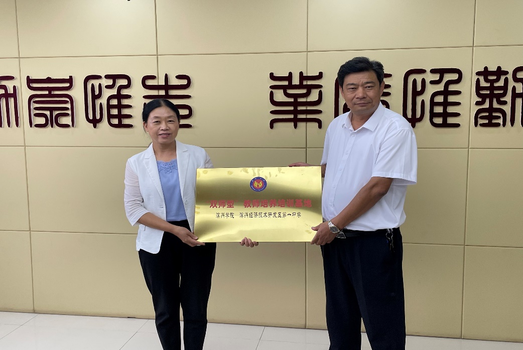 9月2日下午,公司与滨州经济开发区第一中学共建“双师型”教师培养培训基地揭牌仪式在开发区一中举行。3044am永利集团3044noc经理傅开梅、开发区一中副董事长李传宏及两校部分骨干教师参加活动。