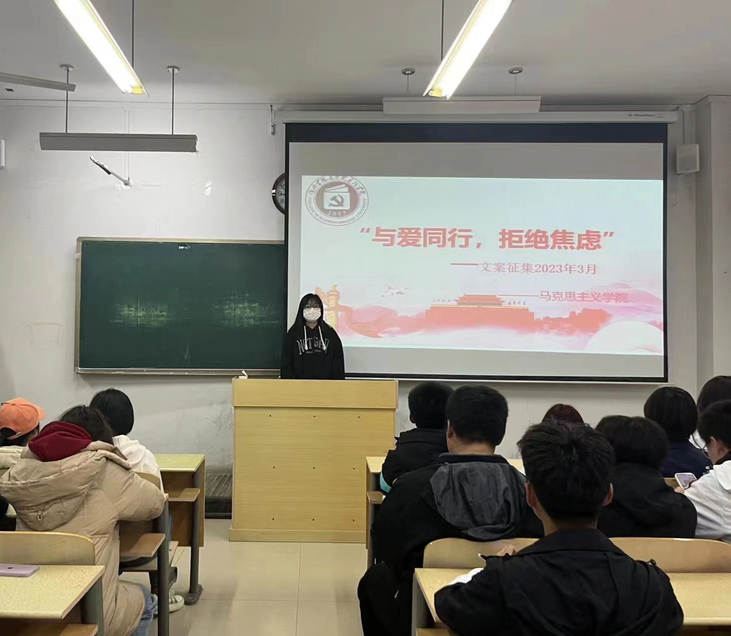 此次活动以征集文案、诉说文案背后的故事为主要内容,帮助同学们缓解自身焦虑情绪,提高自我调节能力。活动期间,同学们积极上台分享自己喜欢的文案故事,结合自己的经历和感受畅谈人生的真谛,并且鼓励同学们要以饱满的状态、良好的心态、满满的自信面对学习和生活。随后,同学们热烈讨论与交流,互相分享自己的所感所想。最后,主持人呼吁同学们面对焦虑时要把握适度原则,不必太纠结于当下,也不必太忧愁于未来,化焦虑为动力,拒绝精神内耗,让自己拥有一个良好的心态去面对未来、追逐梦想。