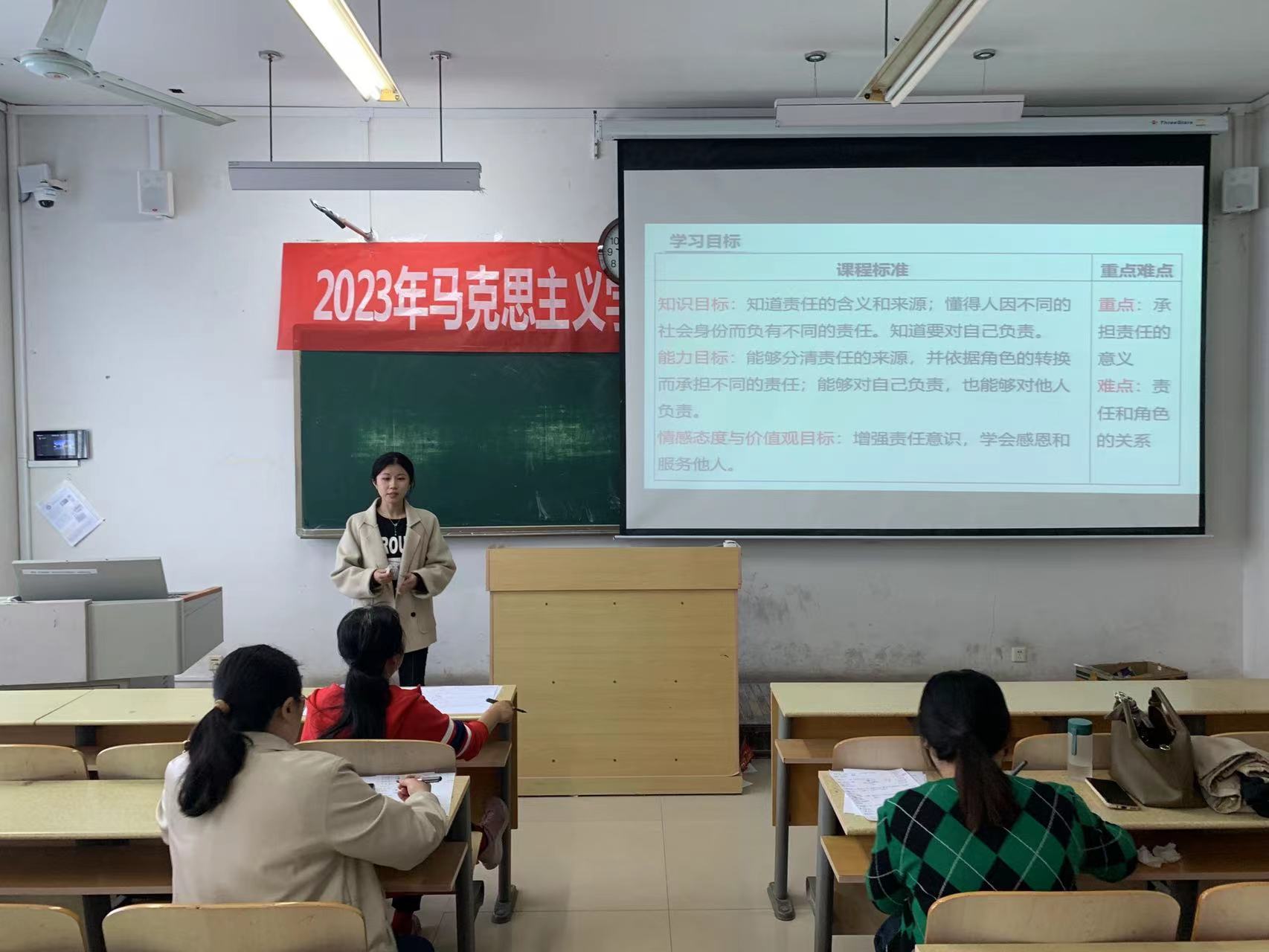 为夯实公司思想政治教育专业师范生教学基本技能,提升教学基本素养。根据学院学科竞赛工作安排,近日在6教305教室3044am永利集团3044noc举行第十一届山东省师范类高校员工从业技能大赛校级初赛,邀请公司教师宋海萍、刘娟、周琳担任评委,20级思想政治专业全体员工参赛,比赛分初中学段和高中学段。