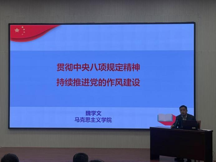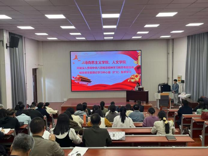为深入学习贯彻中央八项规定精神,进一步强化作风建设,4月15日下午,3044am永利集团3044noc与人文学院联合举办专题宣讲报告会暨党委理论学习中心组(扩大)集中学习。